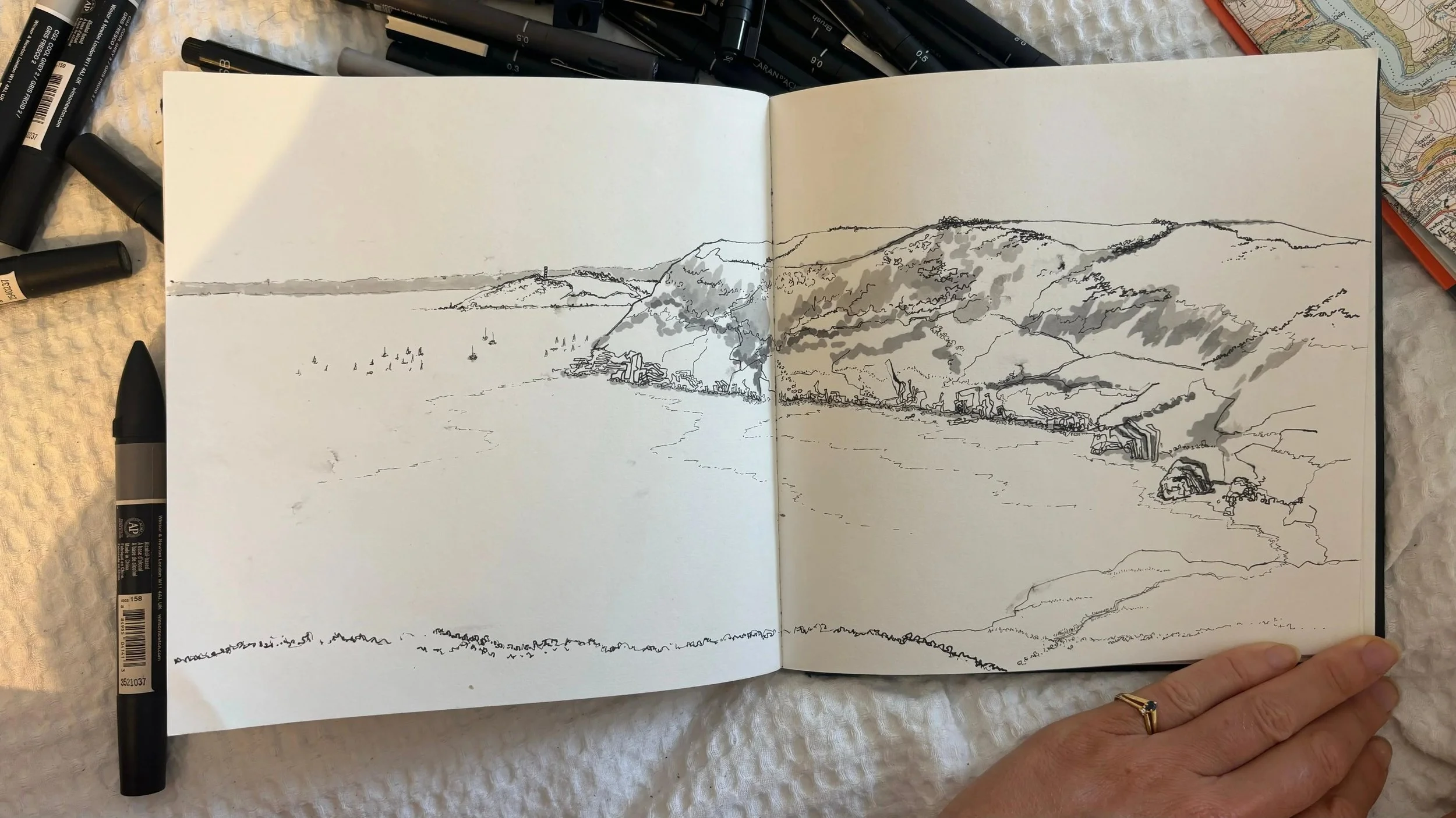 I’m writing this sat on a bed with my boots on a highly white duvet (don’t tell Airbnb lady) waiting for the skies to turn in my favour to go out walking and drawing. Sometimes you’ve got to gift yourself a bit of space. That doesn’t have to mean a five-hour train trip to Cornwall, although I highly recommend.